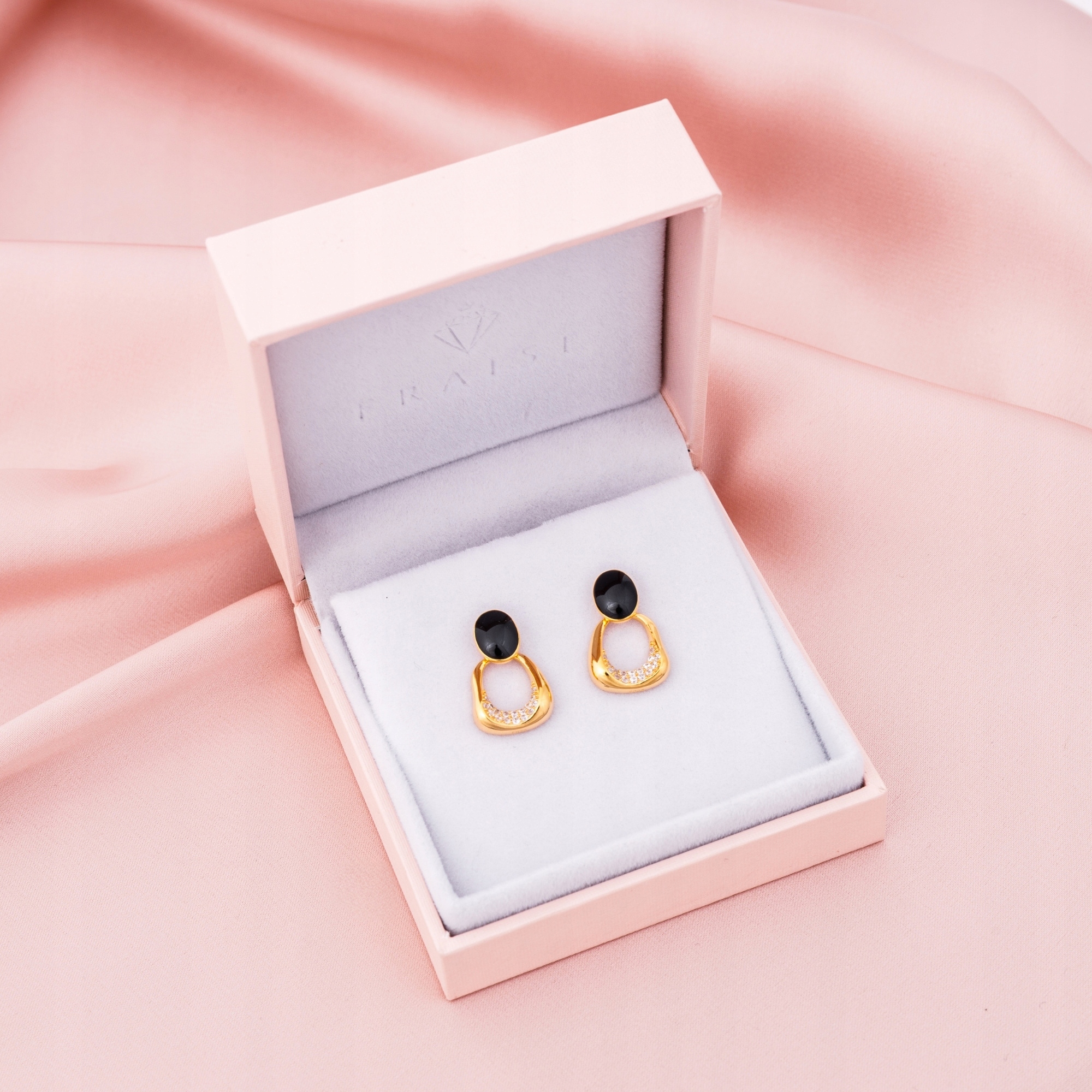 Eleganckie kolczyki S925 pozłacane Fraise z czarnym akcentem i cyrkoniami