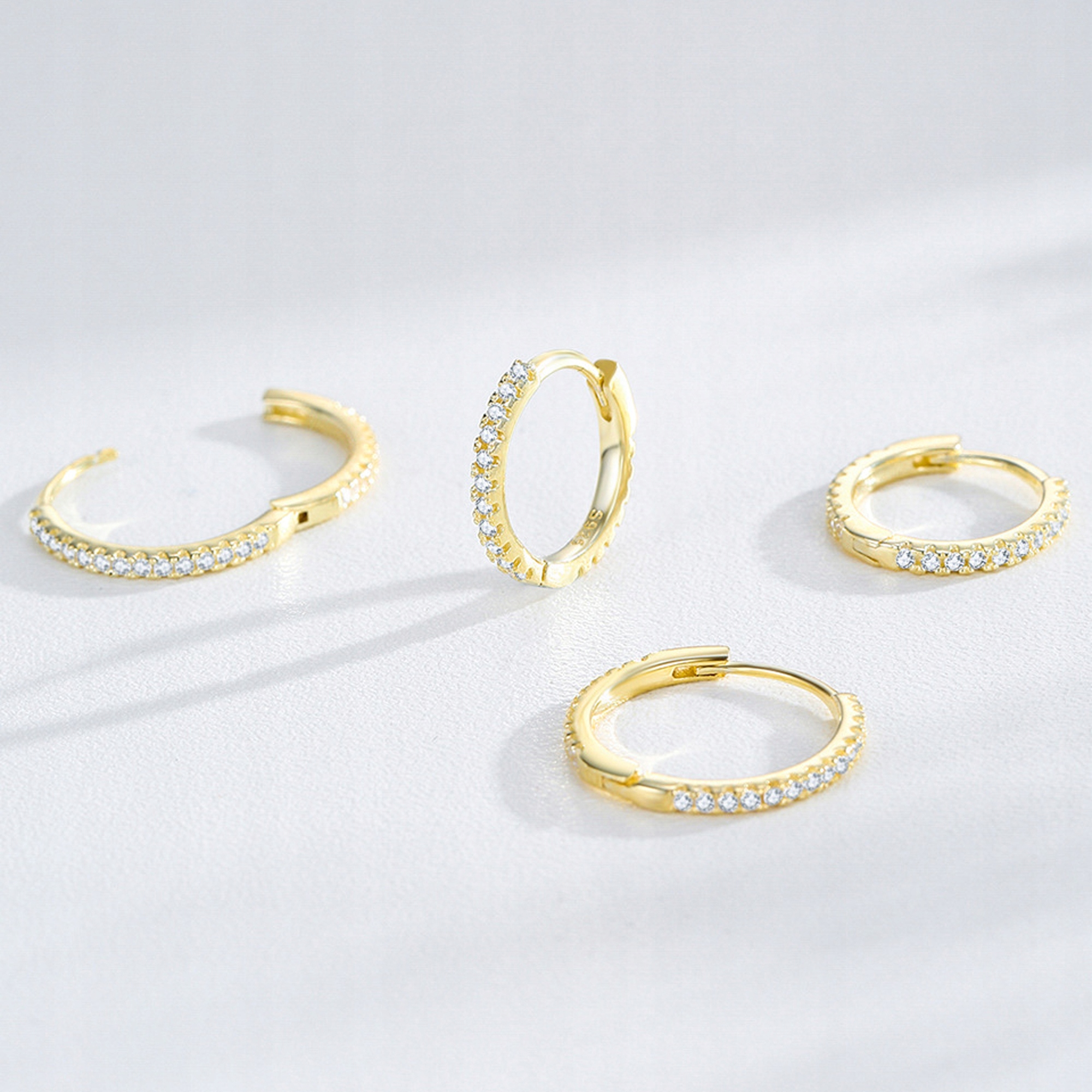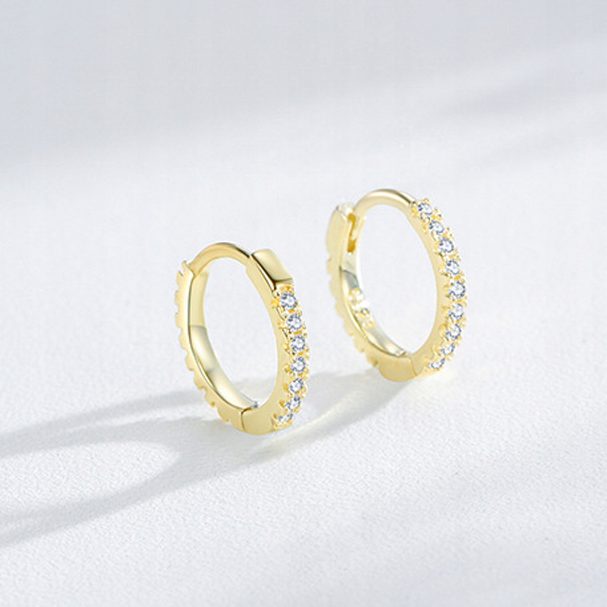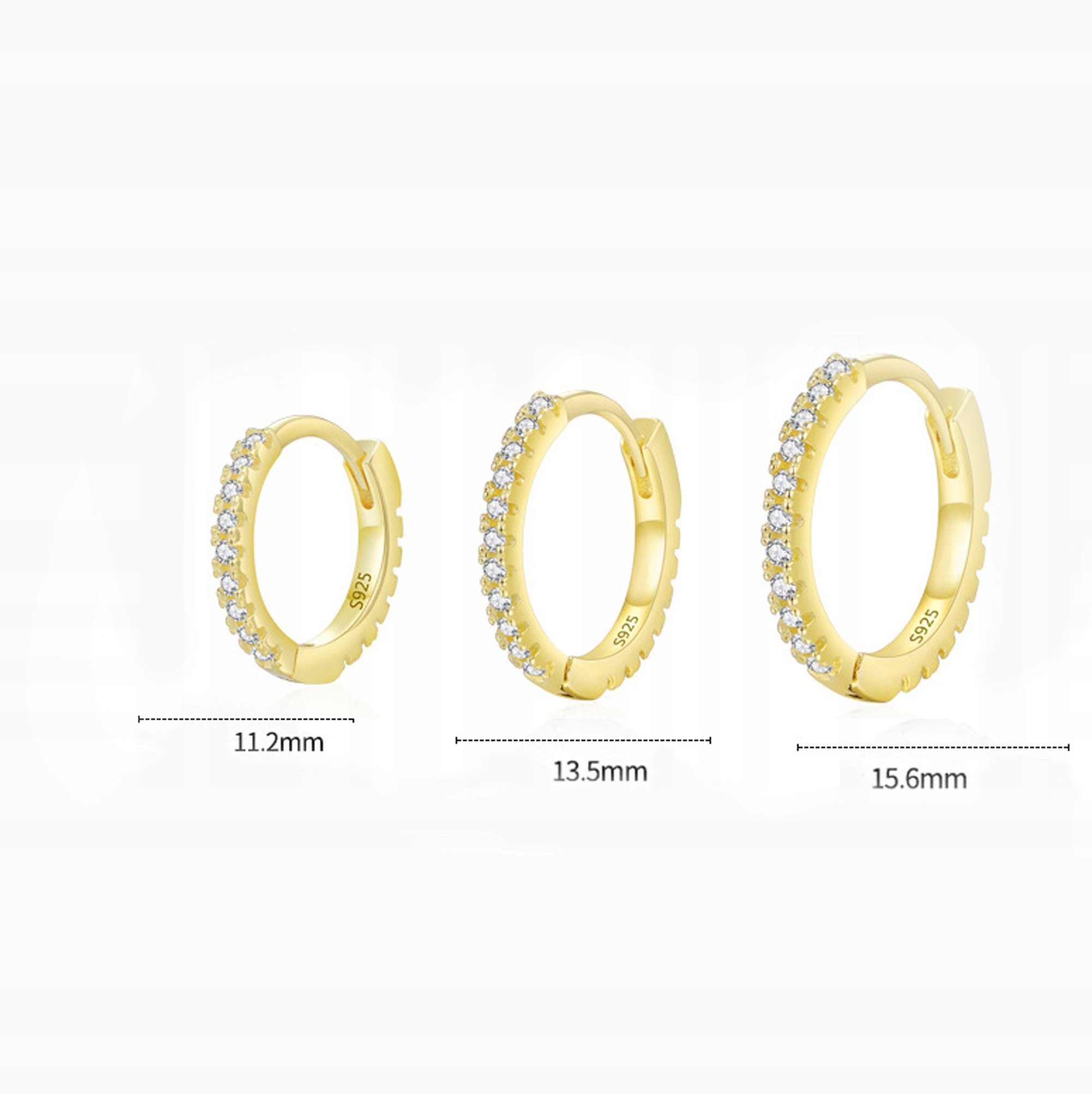 Fraise kolczyki 1,1cm kółka z cyrkoniami srebrne S925 pozłacane 14K