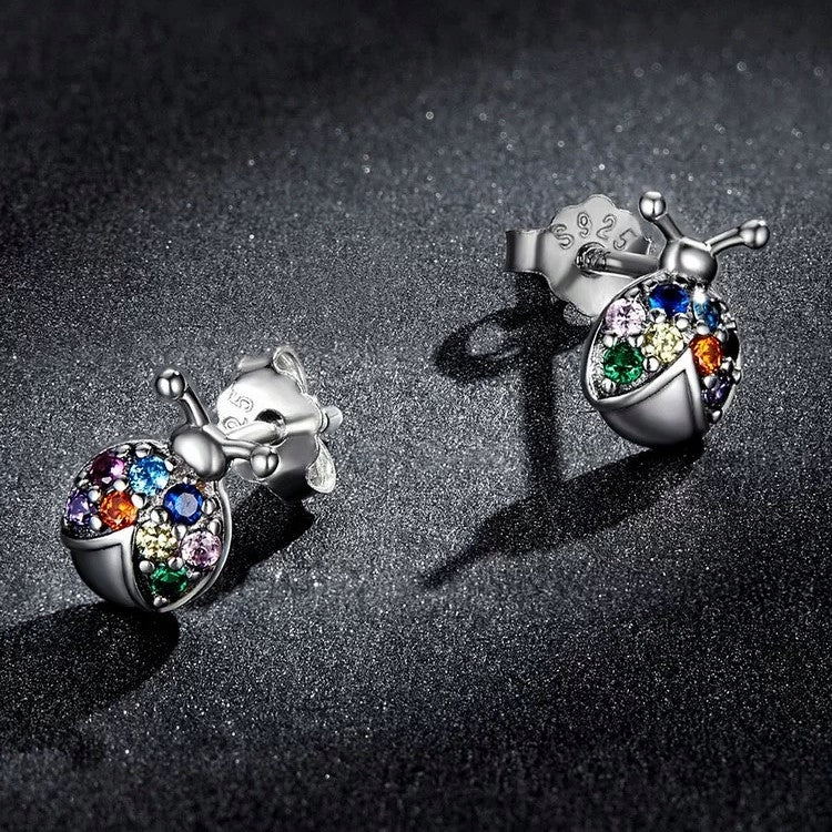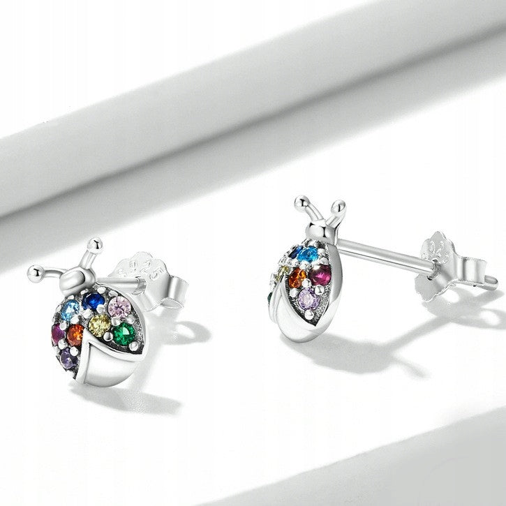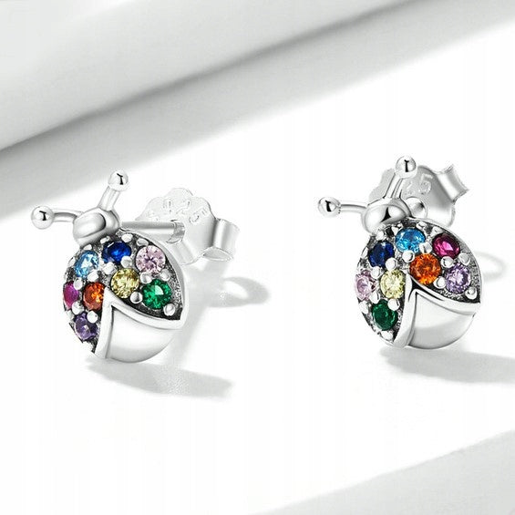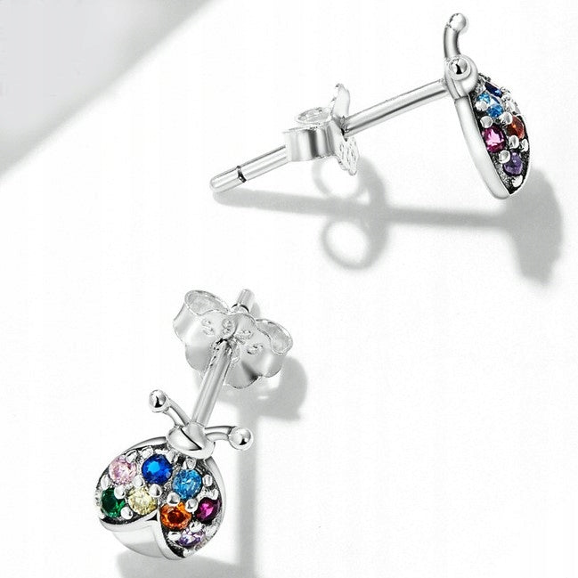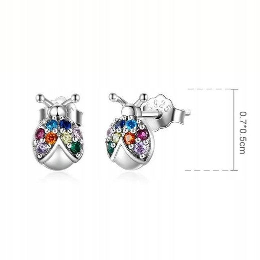 Srebrne kolczyki w kształcie biedronek z cyrkoniami - srebro S925
