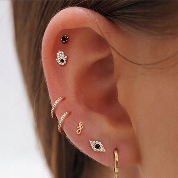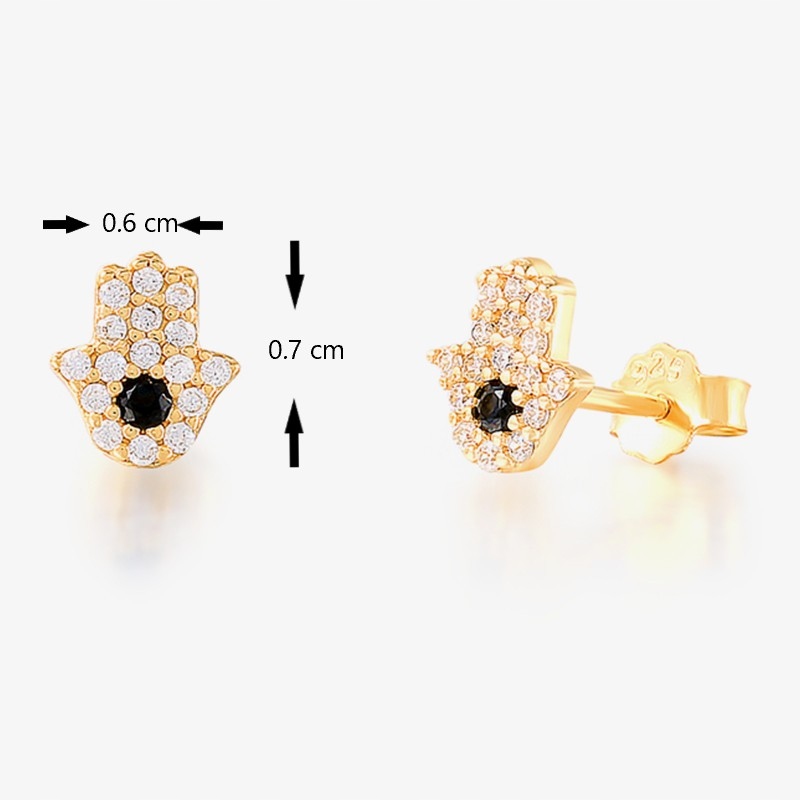 Fraise kolczyki ręka Fatimy srebro S925 dłoń pozłacana z cyrkoniami