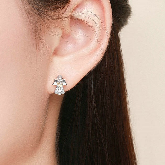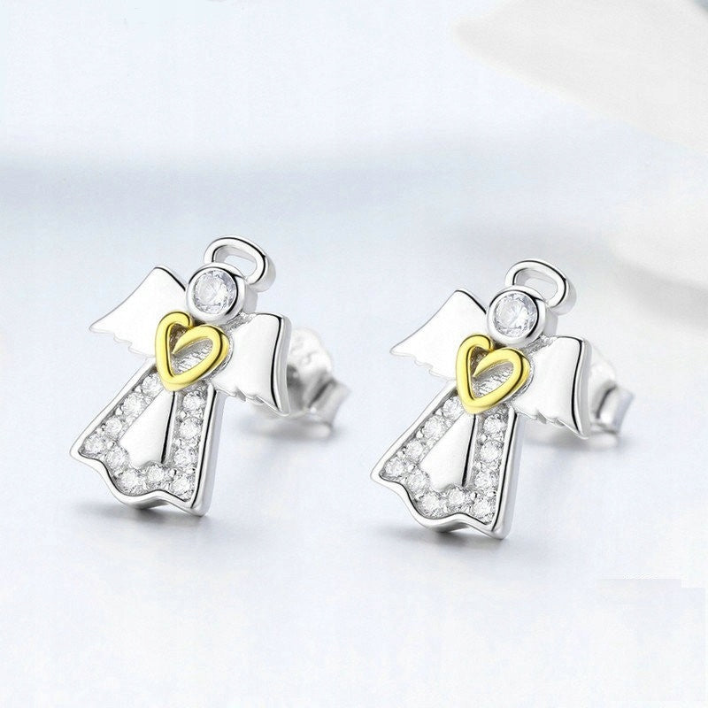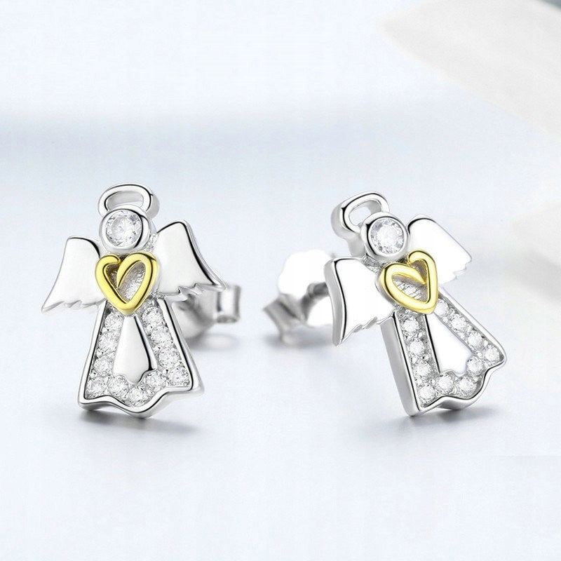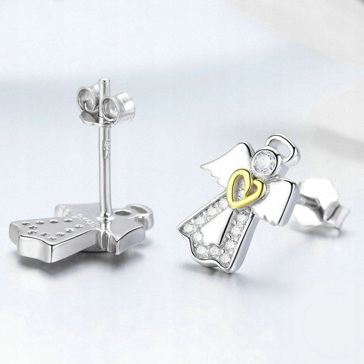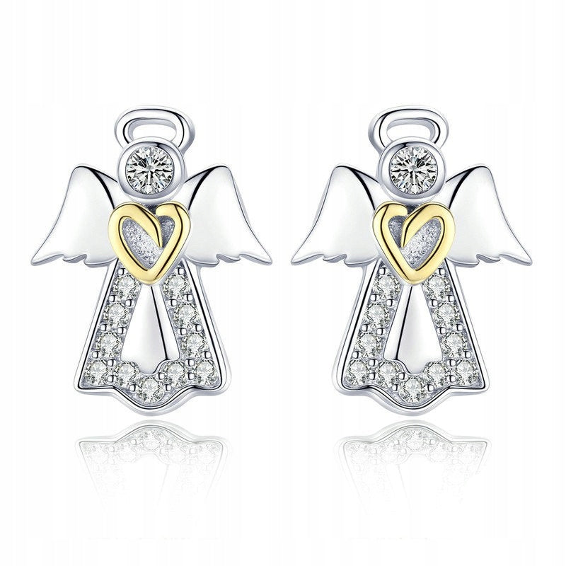 Srebrne kolczyki aniołki z serduszkiem - srebro S925
