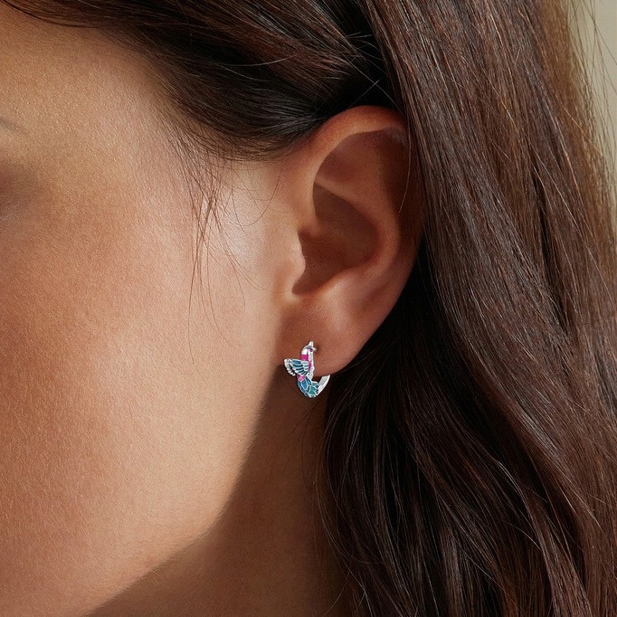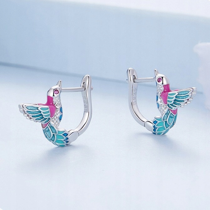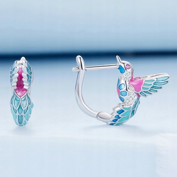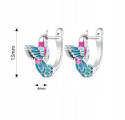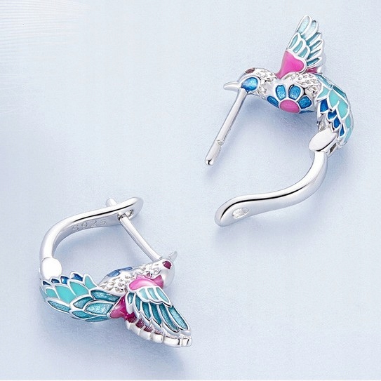 Fraise kolczyki srebrne S925 koliberki kolorowe