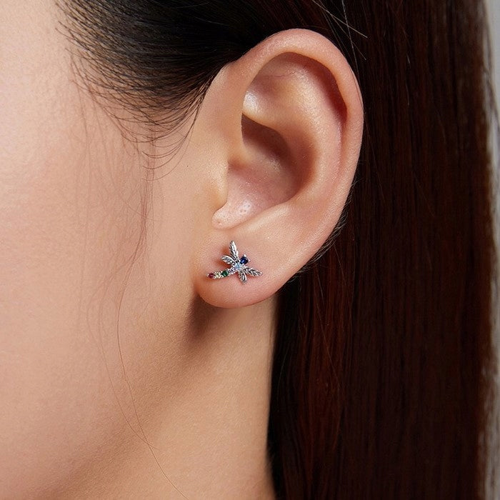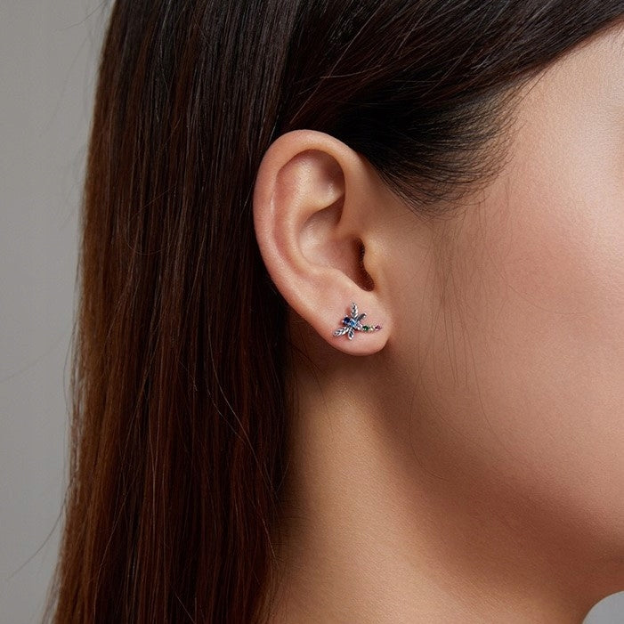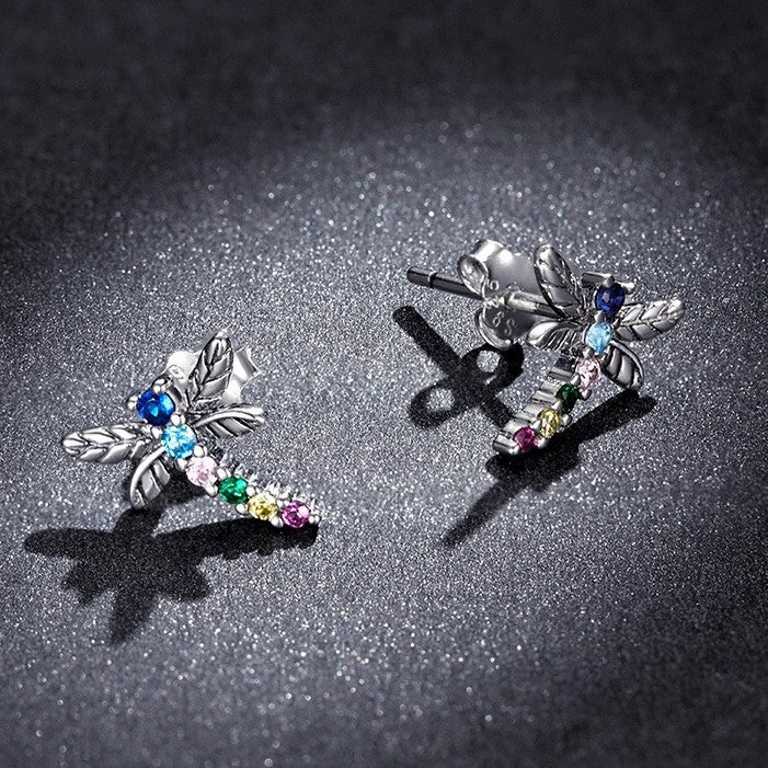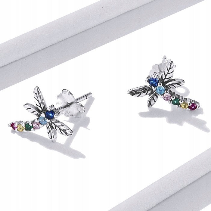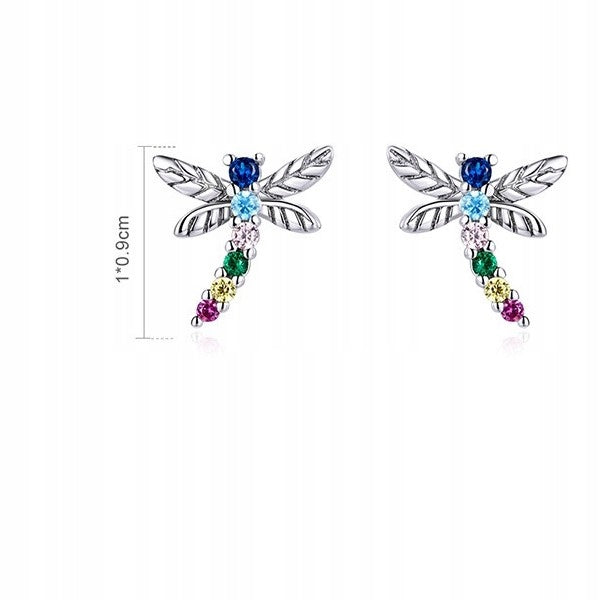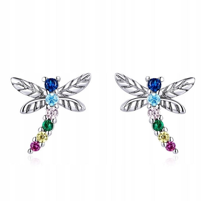 Srebrne kolczyki ważka z kolorowymi cyrkoniami - srebro S925