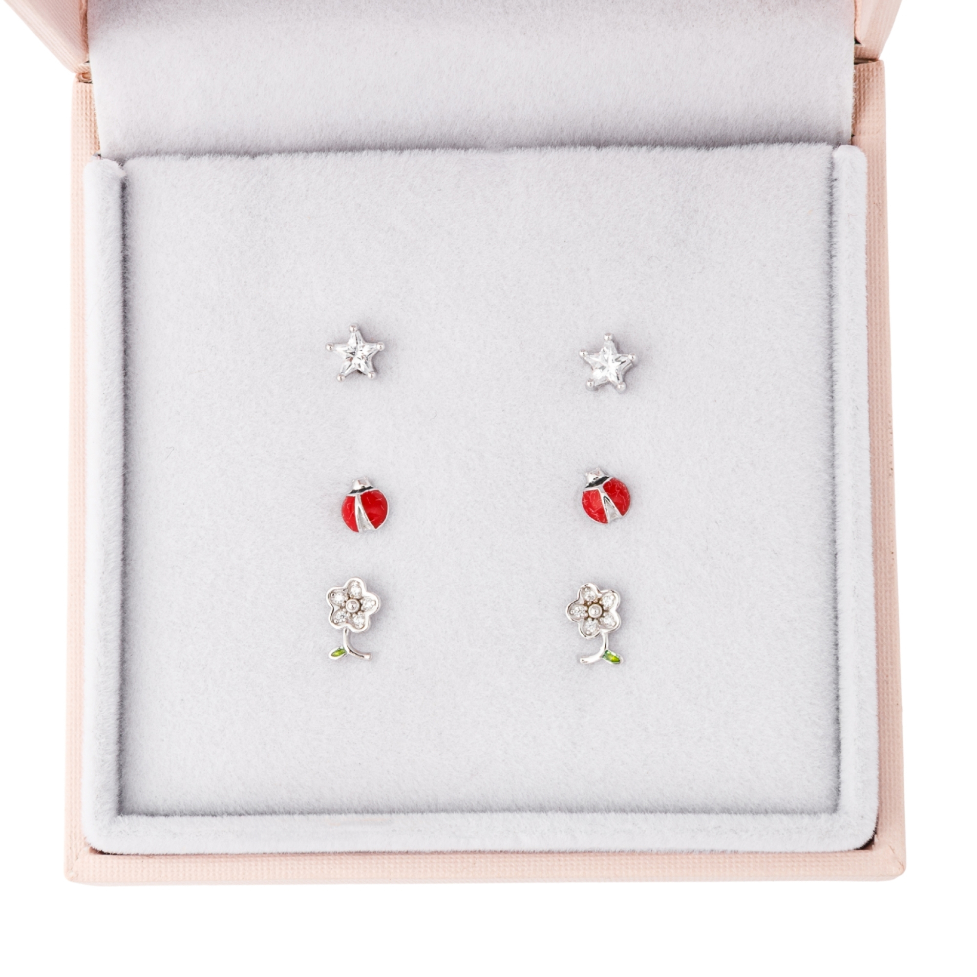 Fraise Srebrne 925 kolczyki sztyfty KWIATKI BIEDRONKI dziewczęce 3 pary