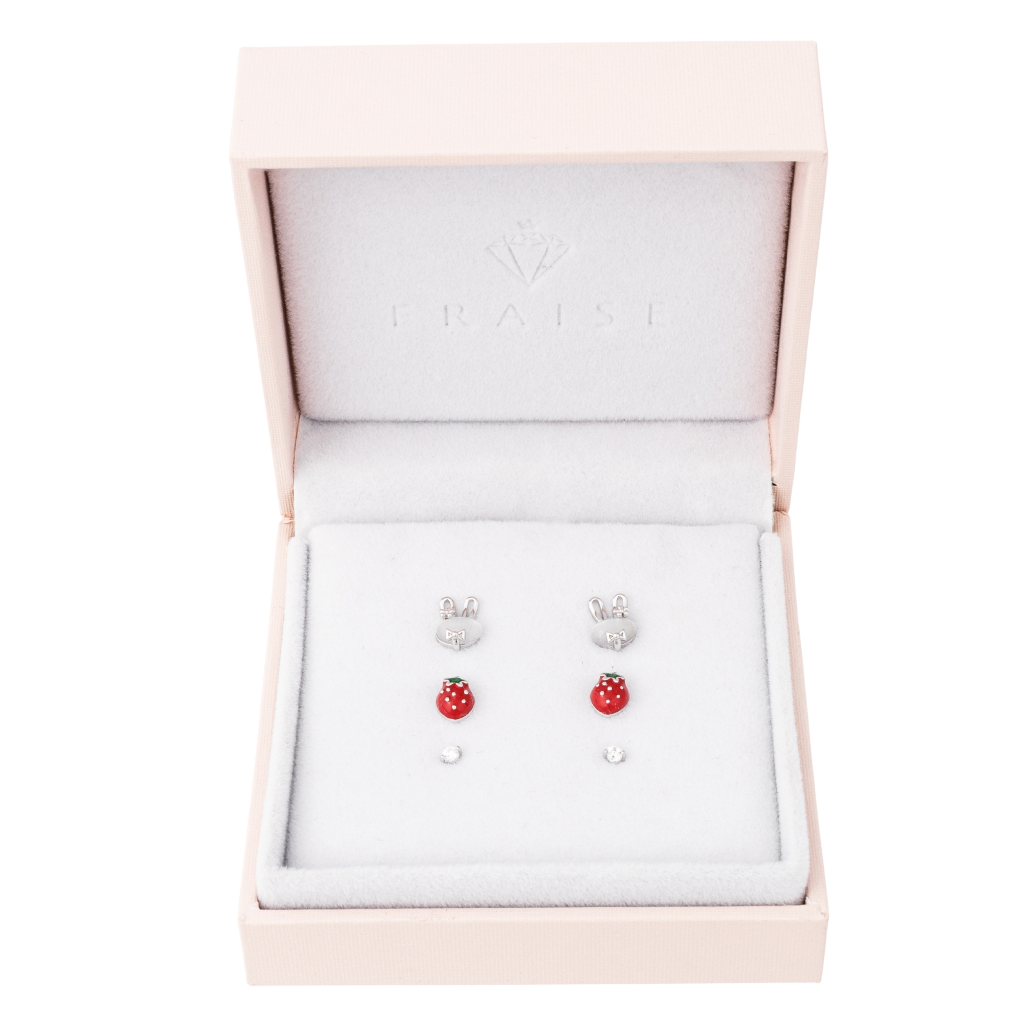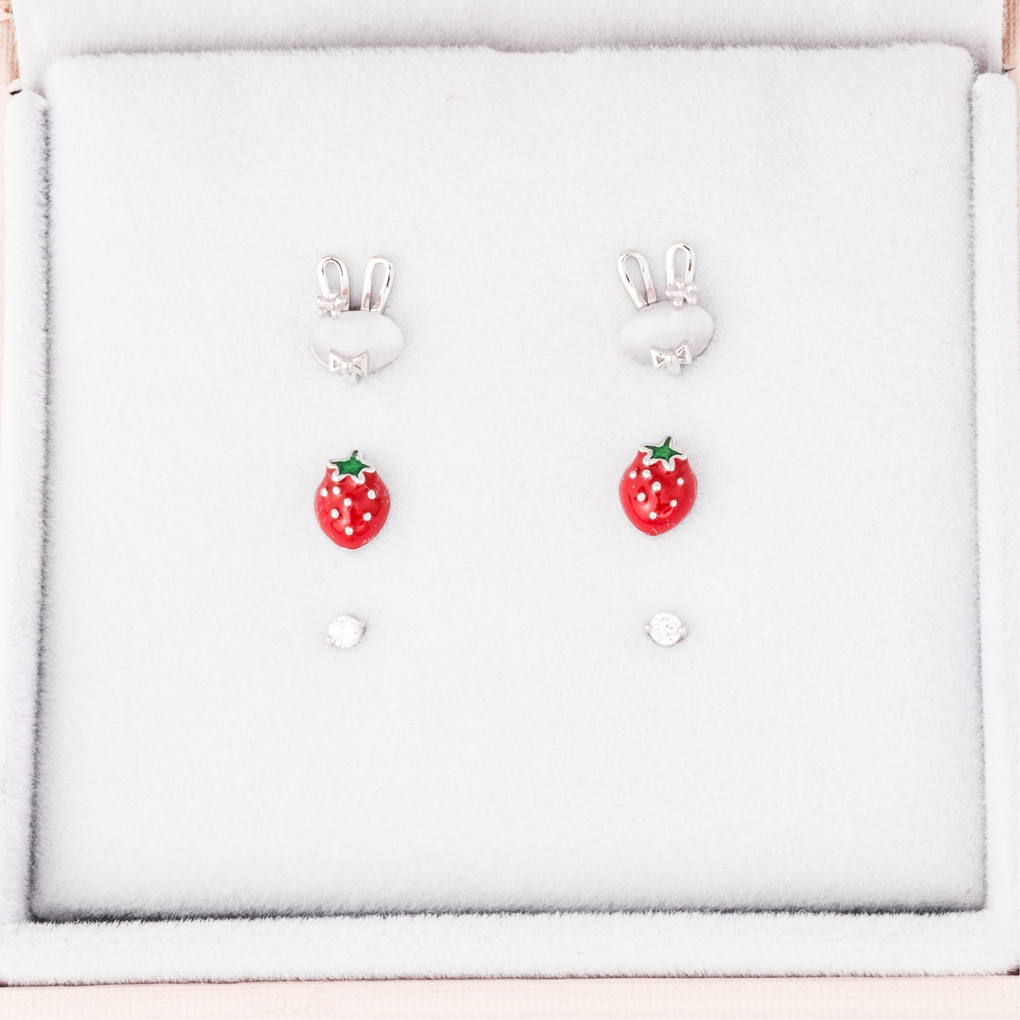 Fraise Srebrne 925 kolczyki sztyfty Słodkie TRUSKAWKI KRÓLICZKI 3 Pary