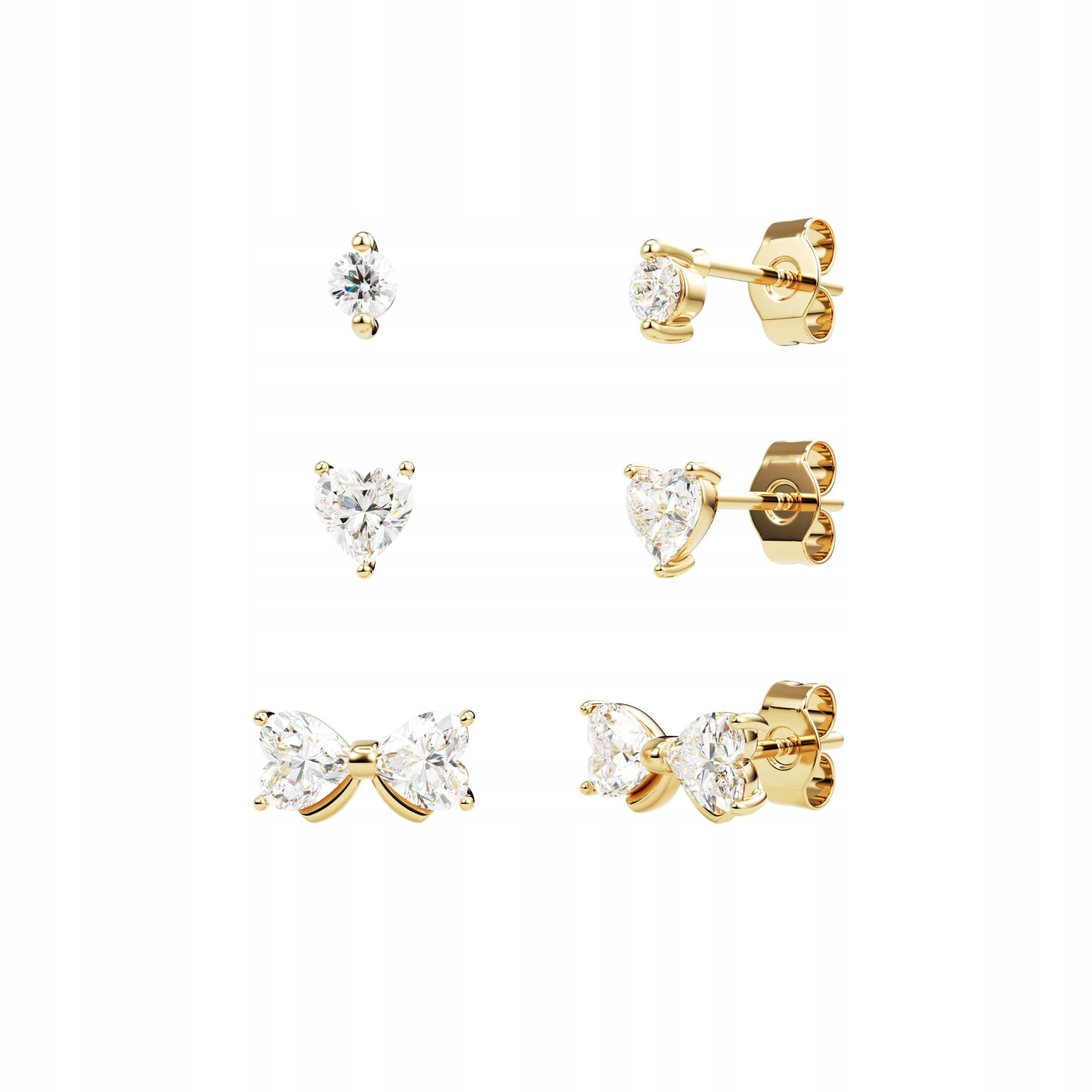 Srebrne kolczyki pozłacane komplet 3 par Cyrkonie klasyczne serce kokardka