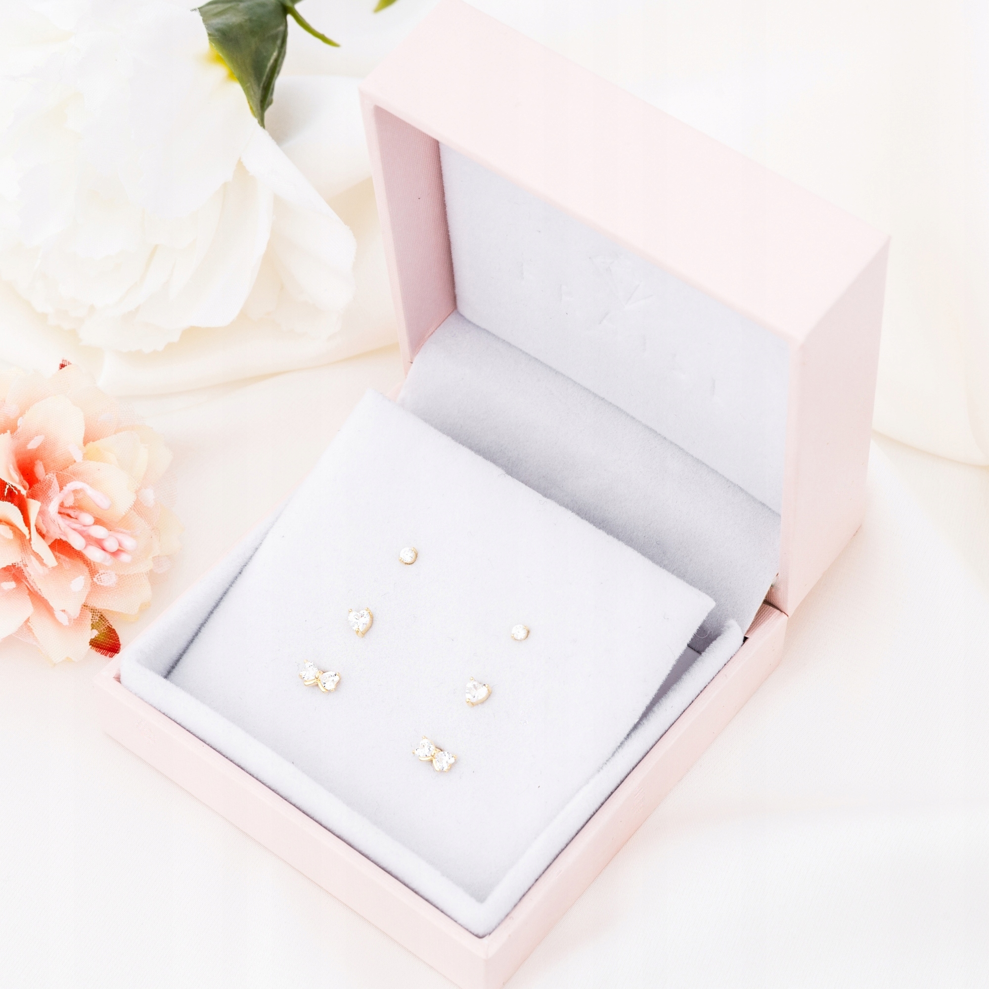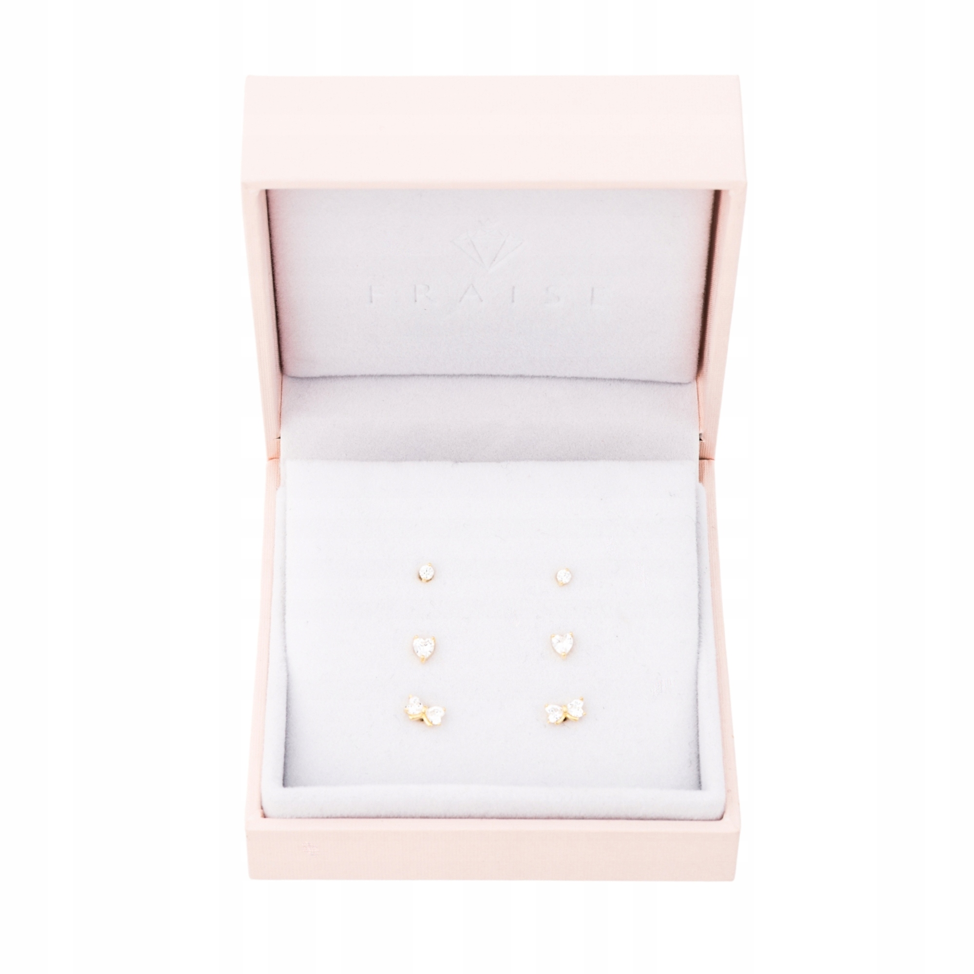 Srebrne kolczyki pozłacane – komplet 3 par | Cyrkonie | Sztyfty: klasyczne, serce, kokardka