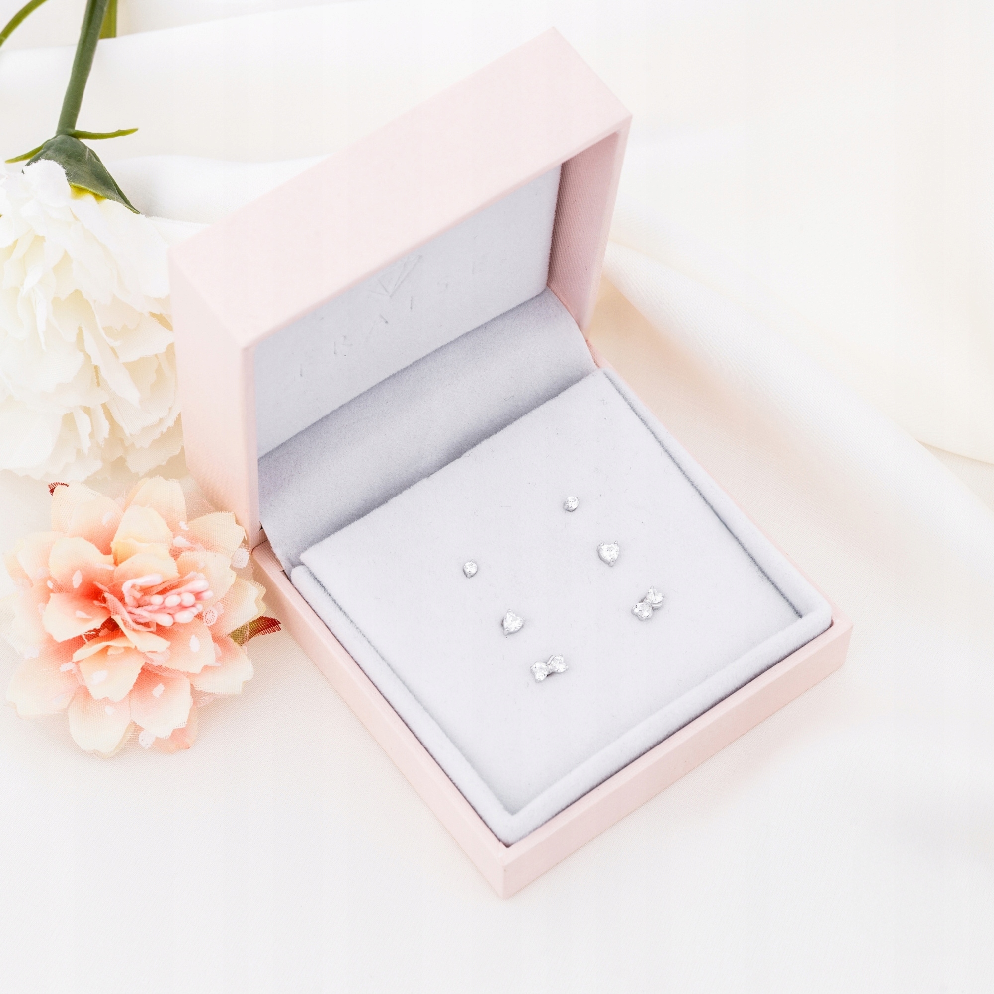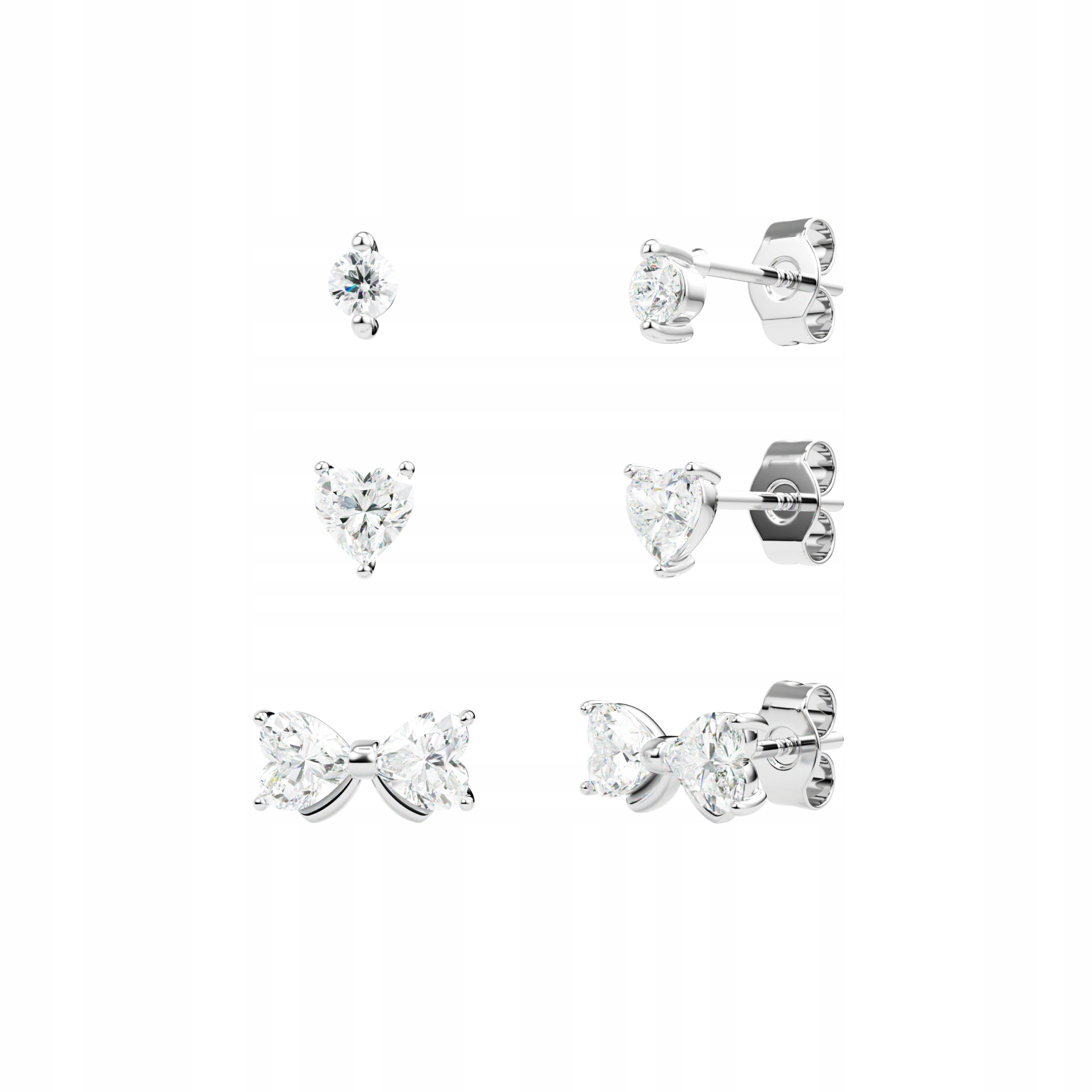 Srebrne kolczyki sztyfty – komplet 3 par | Cyrkonie | Serce, kokardka, klasyczne